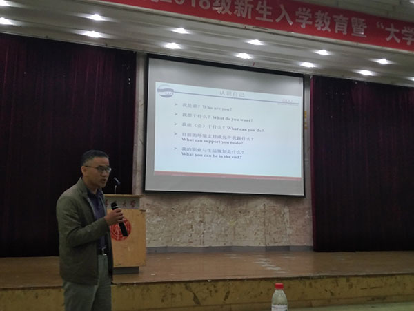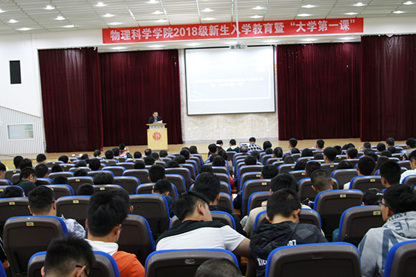 在金家岭校区图文中心四楼学术报告厅举行2018级新生入学教育暨“大学第一课”。院党政领导黄国俊、滕冰、周志强、王乙潜出席会议。会议由院党委副书记周志强主持。