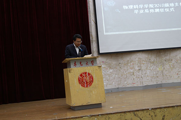 物理学(师范类)系主任张芳作为班主任代表发言,她简要介绍了大学和中学阶段的学习差异以及物理学在自然科学中的重要性和基础作用。她说,班主任是同学们学习和发展的导师,希望同学们要重视学业,要经常与班主任沟通交流。