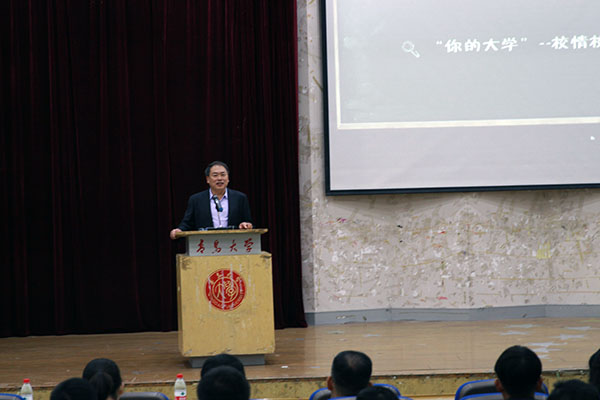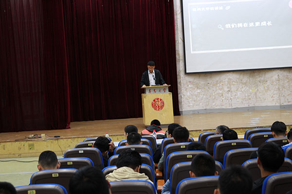 光电信息科学与工程系主任云茂金作为教师代表作了题为《大学学习与创客教育》的发言。他建议同学们学习要与兴趣相结合,希望同学们主动与老师和优秀学长交流,提前规划好自己的目标和未来,并鼓励大家创新创业。