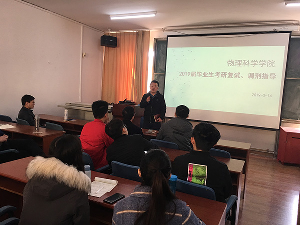 召开了2019届毕业生考研复试调剂指导咨询会,邀请系主任、硕士生导师、班主任等针对同学们考研复试和调剂等支招助力,为大家答疑解惑。学院党委副书记郝伟主持会议,2019届近80名考研学生参加会议。