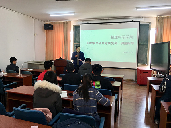 会上,学工办主任李慧晶首先对2019年考研复试、调剂等动态信息进行分析解读,就常见的共性问题提出建议。随后,专业教授、博士老师们从不同角度为同学们提出了意见和建议。
