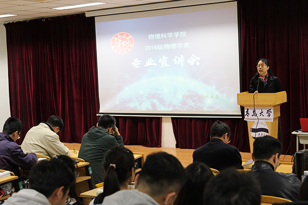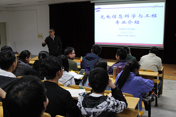 随后,材料物理系主任温峥教授、光电信息科学与工程系主任云茂金教授、新能源科学与工程系主任徐胜教授、应用物理系主任袁峰教授结合各自的专业实际,从专业基本情况、课程设置、教学团队、考研情况、就业情况、职业发展等方面向同学们简要介绍了各自专业情况和选择本专业的发展前景。最后,同学们进行了现场提问,各专业负责人热情地回答了同学们的问题,解答了他们的疑惑。