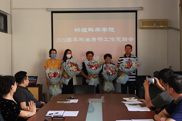 会上,学生为考研专业课辅导老师献了花,以表达对辛苦付出的老师们的感谢。