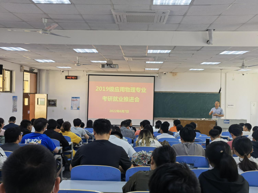 为进一步做好2019级学生考研和就业工作,6月7日下午2019级应物专业考研就业推进会在博知楼102召开。学院党委副书记董永红,应用物理系主任钟德高及副主任孙慧娟、张红娣,2019级应物专业学生及2018级考研就业优秀学生代表参加会议,会议由2019级辅导员郝萍主持。