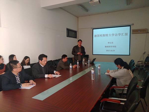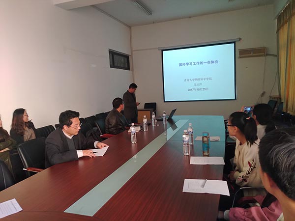 李山东作了《德国明斯特大学访学汇报》的报告,他首先结合案例生动有趣、图文并茂地阐述了磁子学和自旋波电子学的有关研究情况,通过其在台湾清华大学、美国东北大学和德国明斯特大学三次出境访学的切身经历谈了自己在外研究和学习的一些体会,并从思维方向差异、宗教文化差异等方面介绍了欧美与中国思维和文化的差异及其对嘟嘟成人网研究