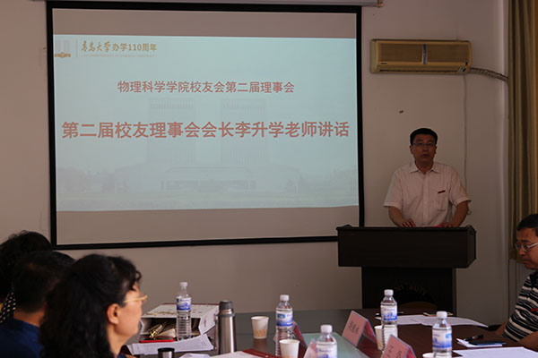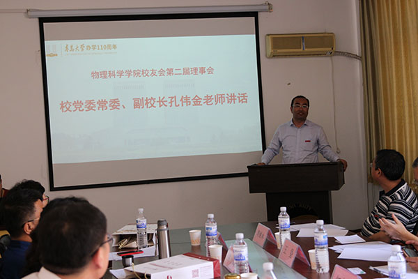 校党委常委、副校长孔伟金讲话,他首先向学院上一届校友会理事会各位理事所做出的贡献表示感谢,向新一届校友会理事会名誉会长、会长、副会长、秘书长、副秘书长以及各位常务理事、理事表示热烈的祝贺!接着,他谈了对校友工作的理解和看法,介绍了学校发展现状和取得的主要成绩,讲述了物理学科的发展沿革和历届青大物理人为物理学科发展所做出的贡献。他说,校友是母校的宝贵财富,是学校建设和发展的积极参与者和贡献者,校友的荣耀就是母校的荣誉,校友成就的高度代表着母校的高度,校友的名誉就是母校良好的声誉。今年适逢嘟嘟成人网