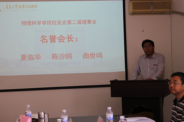 物理教育系84级校友、青岛市教育局初中物理教研员、校友会理事会副会长王㺸,应用物理87级校友、青岛众瑞智能仪器有限公司董事长、校友会理事会副会长何春雷分别发言,他们直言现在所取得的成绩得益于当年在母校所受到的教育,对母校的恩情永远都不能忘记,并表示将和母校一起共奋进,为母校和校友的发展做出更大贡献。