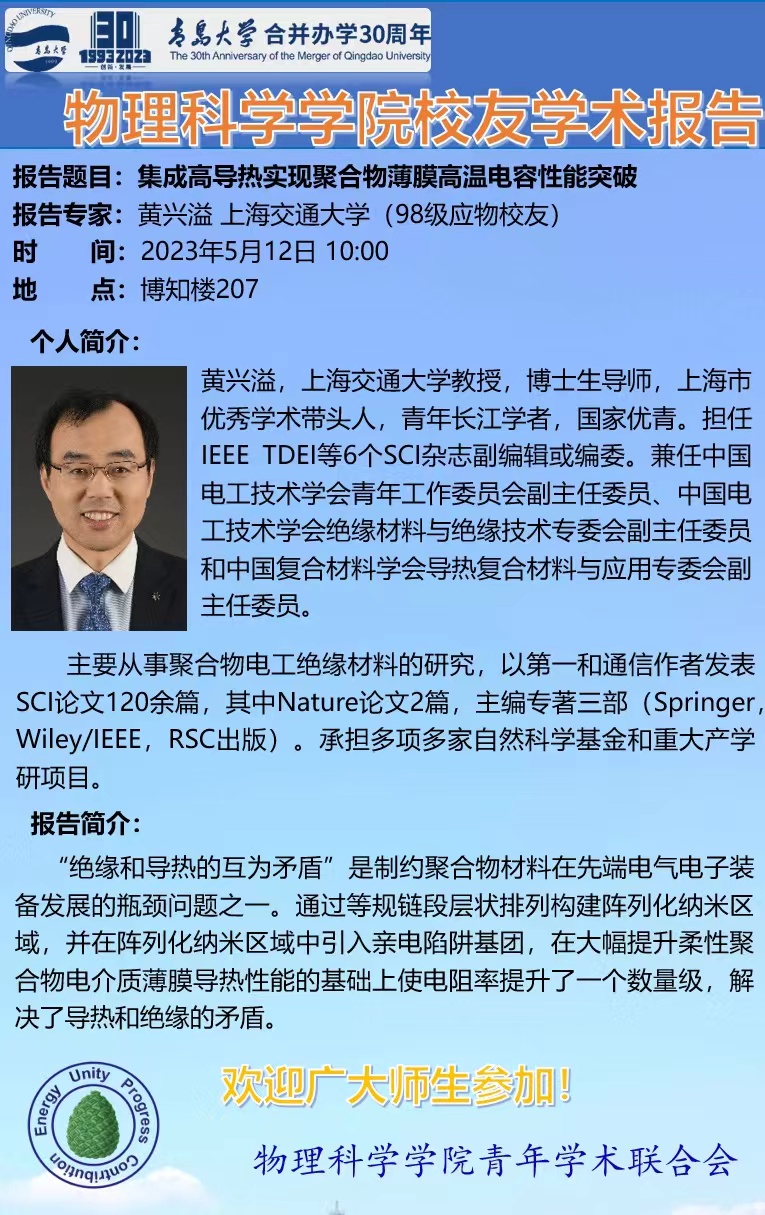 [校友学术活动]集成高导热实现聚合物薄膜高温电容性能突破