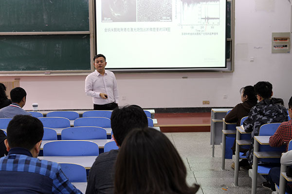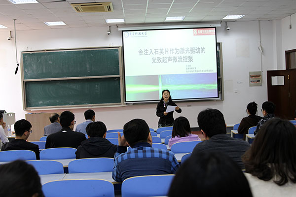 校友、电子科技大学基础与前沿研究院院长王志明教授应邀在博远楼103教室为学生作了题为《金注入石英片作为激光驱动的光致超声微流控泵》的学术报告暨考研宣讲。报告会由院长滕冰主持。学院相关研究方向的师生和有志考研的学生参加了报告会。