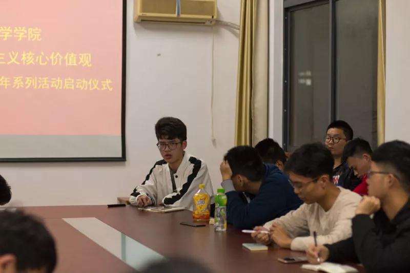 青春践行社会主义核心价值观暨庆祝改革开放40周年系列活动启动仪式,424日在博逸楼401会议室举行。活动由2016级王绪铎同学主持,2016级石书丞同学宣讲。