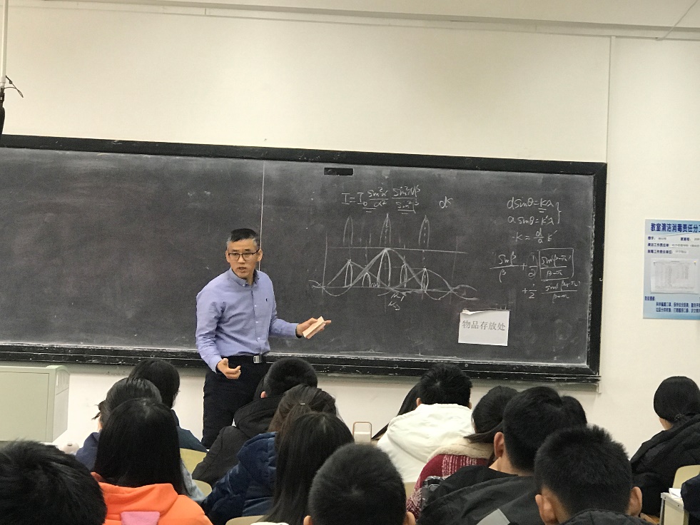 教学上,我结合物理光学“前沿性鲜明、时代性突出、实践性强”的特点,总结出一套自己的教学顺序。课前,我会引导学生调研文献、了解前沿,使学生知道“学有所用”;课堂中,我希望通过讲授、讨论、答辩等环节夯实基础,让学生“厚积薄发”;课后,我也鼓励学生通过创新实验、虚拟仿真、学科竞赛等环节提升能力,让学生“学以致用”。