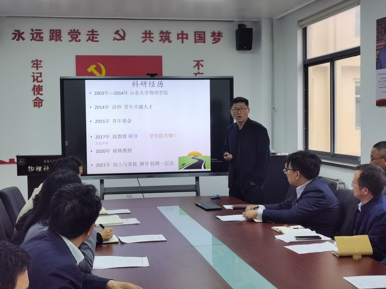 李强作了题为《科研与研究生培养》的交流报告。李强首先介绍了自己的科研经历,然后从科研和研究生培养两方面交流了自己的心得体会。在科研方面,一是要立足平台条件,充分发挥个人科研优势并探索适合的学科交叉研究方向;二是要尽早拿下青基,持续积累获批面上,凝练特色力争人才项目;三是要坚持教学相长,合理分配好工作时间,培养和用好研究生;四是科研成果要以学术为根本,注重论文质量,做好面向社会应用的基础学术研究。在研究生培养方面,一是要以身作则,谨守立德树人职责;二是要激励带动学生学术兴趣,培养创新能力;三是要确保与学生足够的交流时间,通过组会讨论、一对一交流等方式与学生保持沟通指导,关心关爱学生,对学生付出真感情;四是要和学生应是相互成就的关系,做好学生学术发展与毕业就业推荐工作。