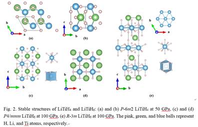 该研究采用遗传算法与密度泛函理论计算,系统揭示了三元锂-钛-氢体系中锂元素对结构稳定性和超导性能的关键调控作用。研究发现,该体系在高压条件下存在两个稳定化学计量比:LiTiH4(P6/mmm相)呈现独特的层状交替排列结构,其中Ti与H原子形成六元环;而稳定相LiTiH6则以R-3m和P4/mmm两种低焓相稳定存在,呈现TiH14多面体与立方体形TiH8结构单元。动力学稳定性分析表明,R-3m LiTiH₆和P4/mmm LiTiH₆分别在50 GPa和100 GPa下保持稳定,由于强的电-声耦合,其超导转变温度分别达到79 K与58 K。该研究为新型高温超导材料的理性设计与实验开发提供了重要理论依据,展现出锂基三元氢化物在超导领域的广阔应用前景。