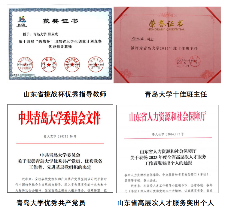 “十佳班主任”、优秀研究生指导教师、优秀共产党员、学科建设先进个人等称号。
